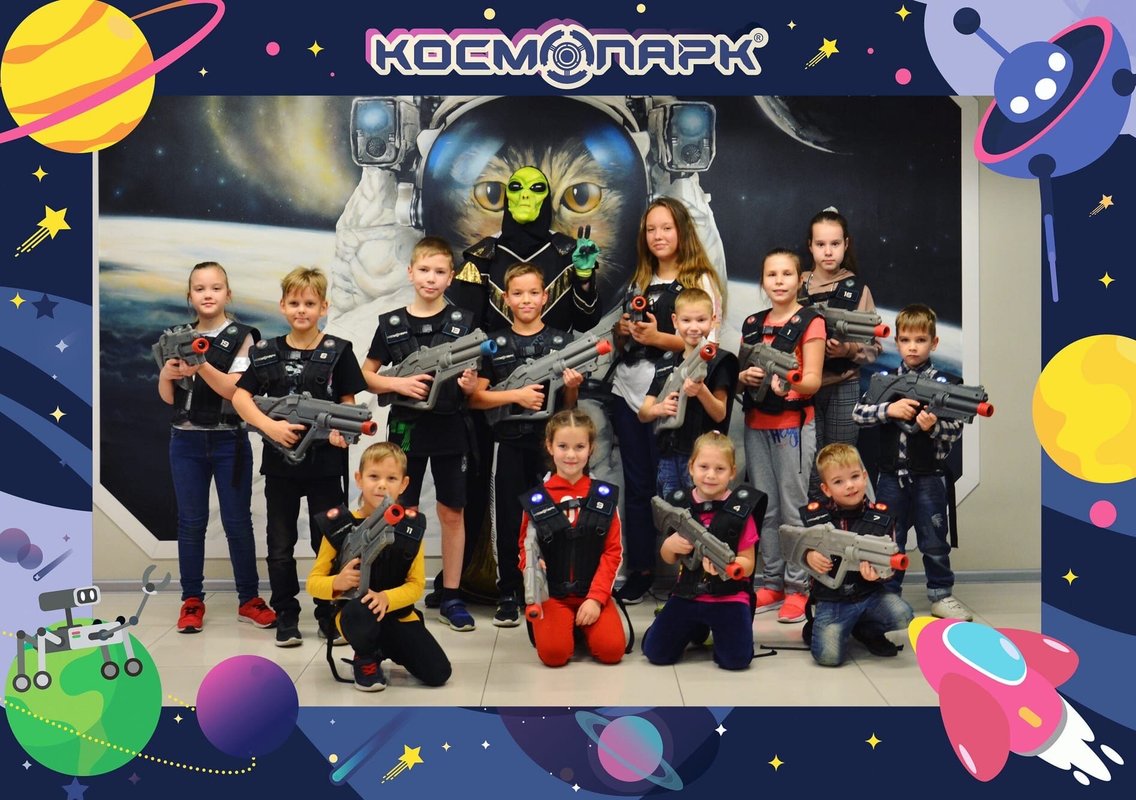 Детям 9-и, 10-и и 12-и лет понравилось, когда мы приходили на день рождения ребенка часа на 2. У них осталось хорошее впечатление от посещения космопарка, особенно от самого лазертага.